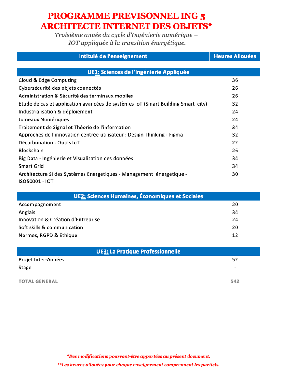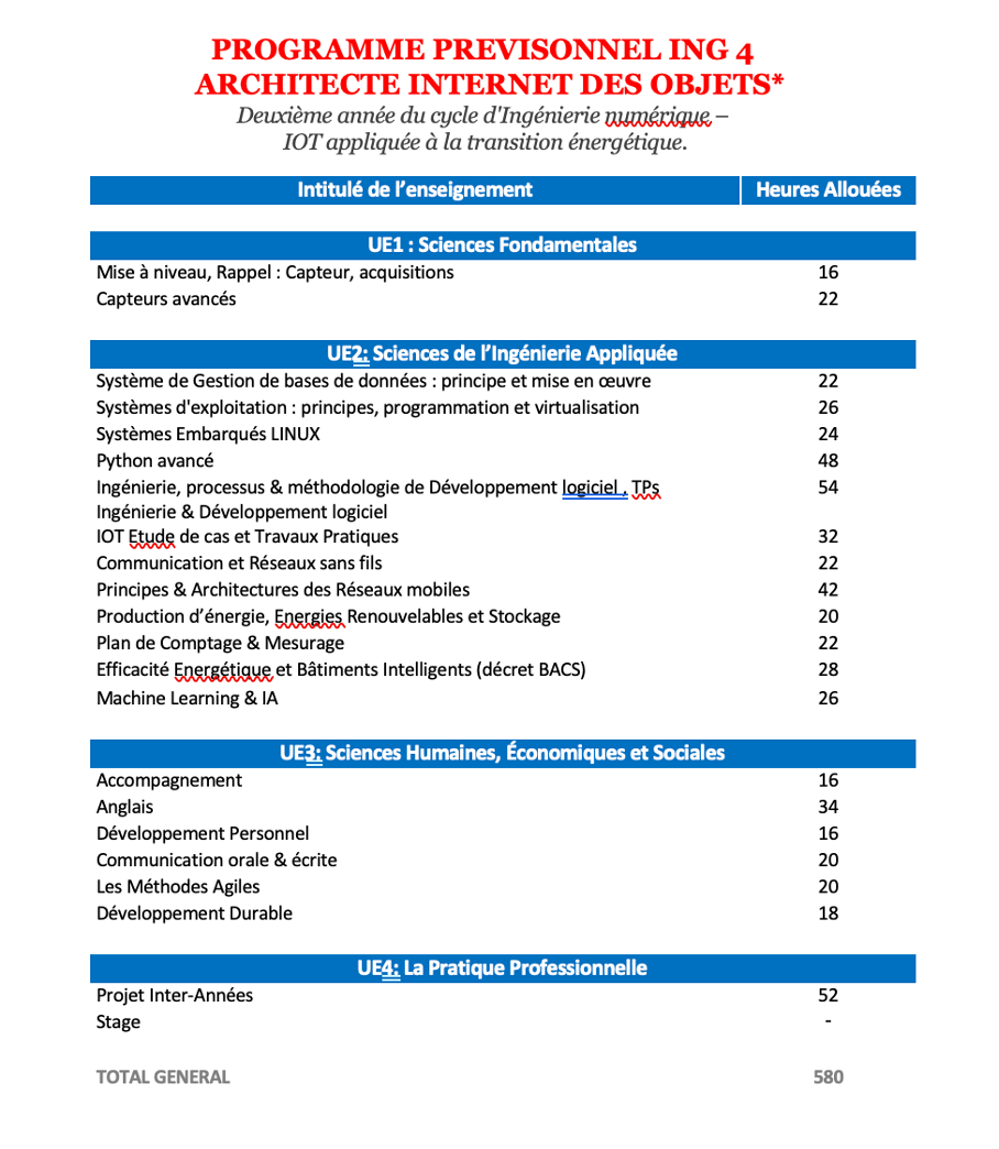 Après la validation du Bac+5, l’élève obtiendra alors le TITRE « ARCHITECTE INTERNET DES OBJETS » en cours de renouvellement au niveau 7 (BAC + 5)